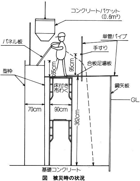 R22.点検(作業開始前)-災害事例 LOD 仕様 法令 強度計算 組立・解体手順 災害事例 ヒヤリハット事例 グッジョブ事例 C6 災害事例 ●職場のあんぜんサイト検索⇒ No.404 コンクリート打設作業中、手すりの下方から墜落 関連記事 R14.点検(組立等後)-ヒヤリハット事例 R24.システム承認-グッジョブ事例 R21.墜落制止用器具と親綱-グッジョブ事例 R13.昇降階段-仕様 R26.その他-ヒヤリハット事例 R5.筋かい等-LOD